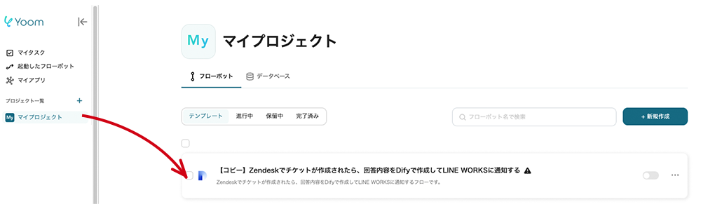 プログラミング不要でフローボットの設定が簡単に完了しました。今回使用したテンプレートは、こちらです。