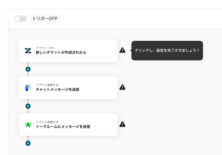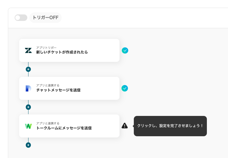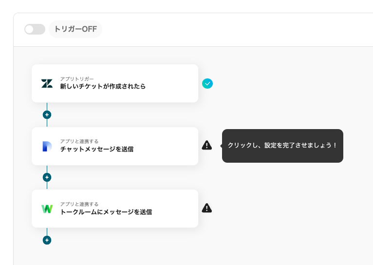 こちらでは、Zendeskで発行されたチケット情報を取得する設定を行います。