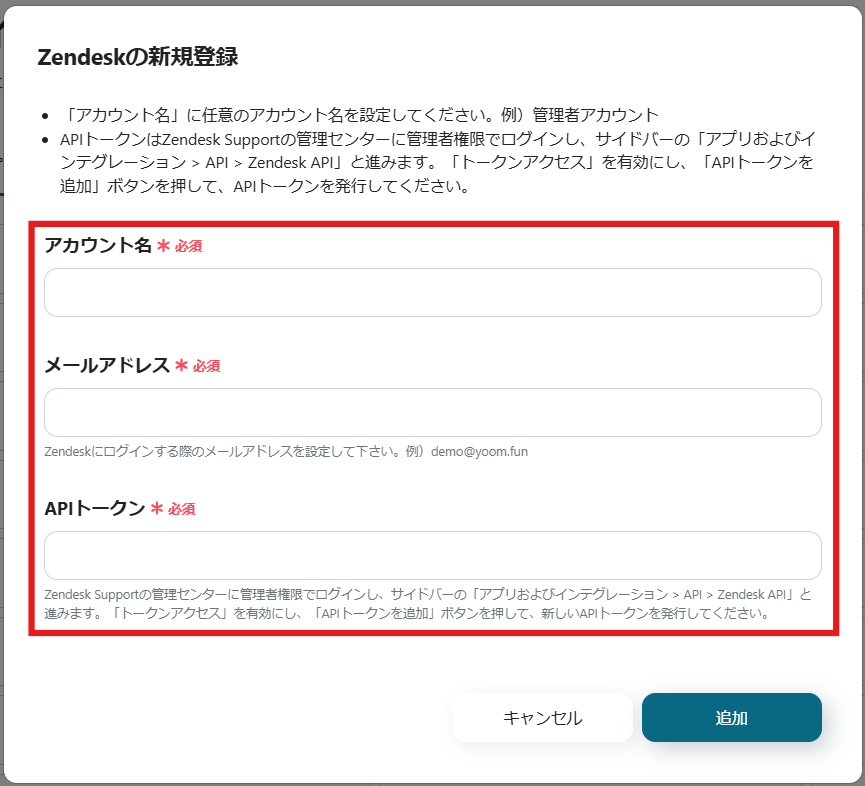 まず、Zendeskのマイアプリ登録を行ってください。