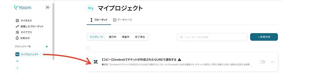コピーしたテンプレートは、マイプロジェクトに追加されます。マイプロジェクトは左のメニューバーからアクセス可能です。