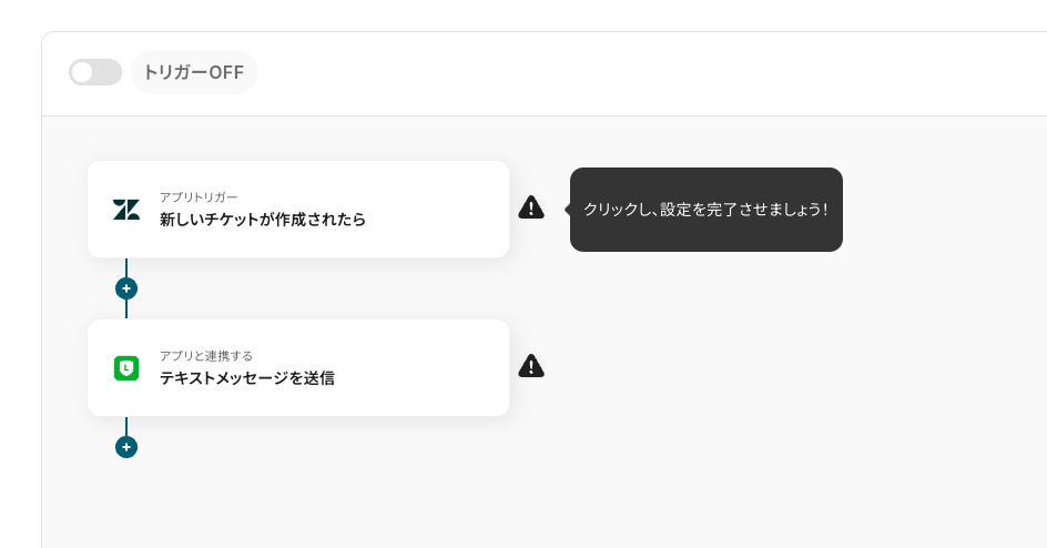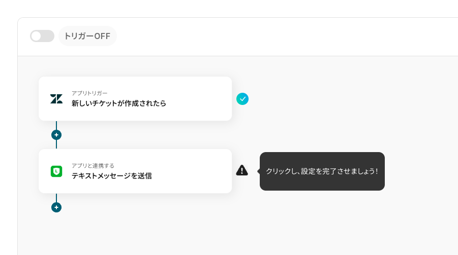 このワークフローを活用すれば、Zendeskで新しいチケットが作成されたタイミングで、担当者のLINEへ自動で通知を送信できます。