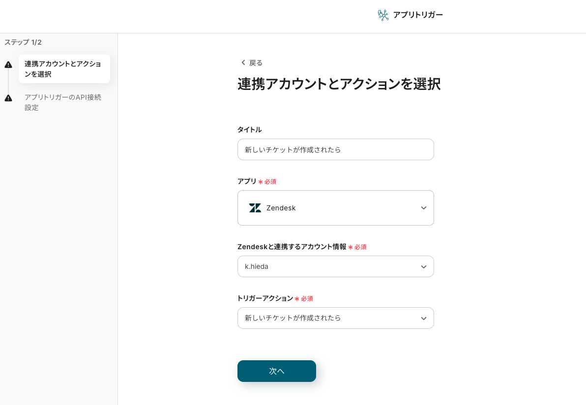 ステップ3:アプリトリガー「新しいチケットが作成されたら」
