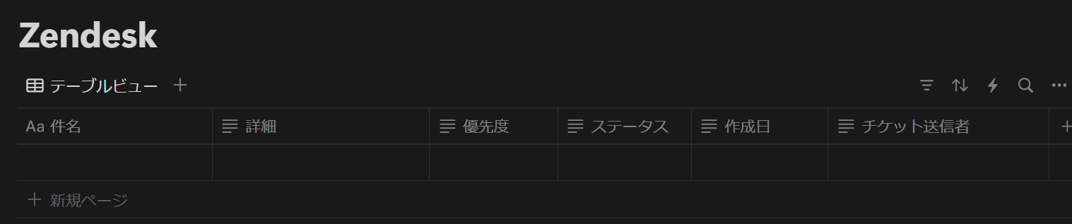 - Zendeskのチケット情報を転記できるNotionデータベース。