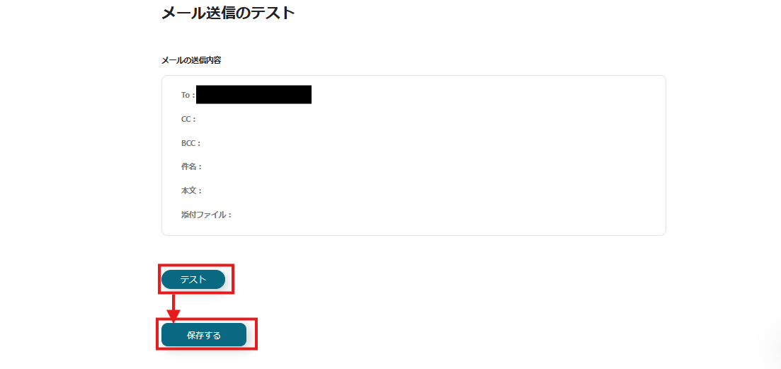 テストをクリックすると、Outlookにテスト用のメールが届きます。