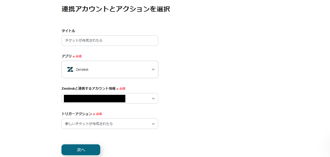 Zendeskと連携するアカウントを確認し、次のページに進みます。