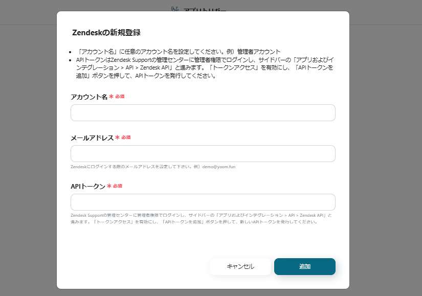 参照:Zendeskのマイアプリ登録の方法は、こちらを確認してください。