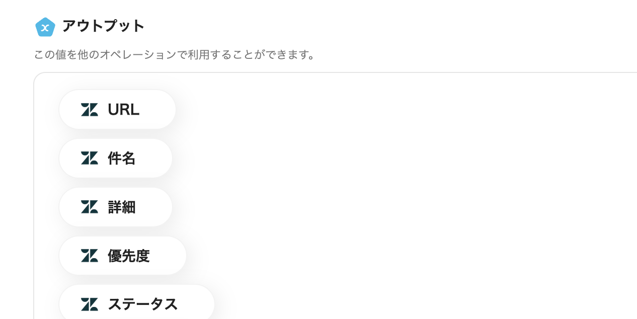 アウトプット情報は、「この値を他のオペレーションで利用することができます。」という注釈の通り、この後のステップで引用・活用できます。