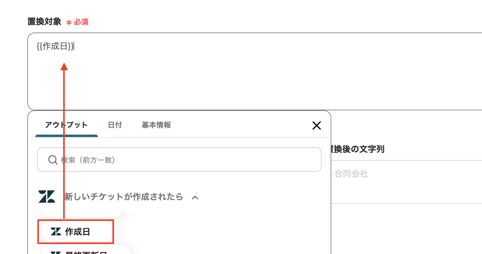 今回は、置換対象を『チケットの作成日』に指定することを想定しています。
