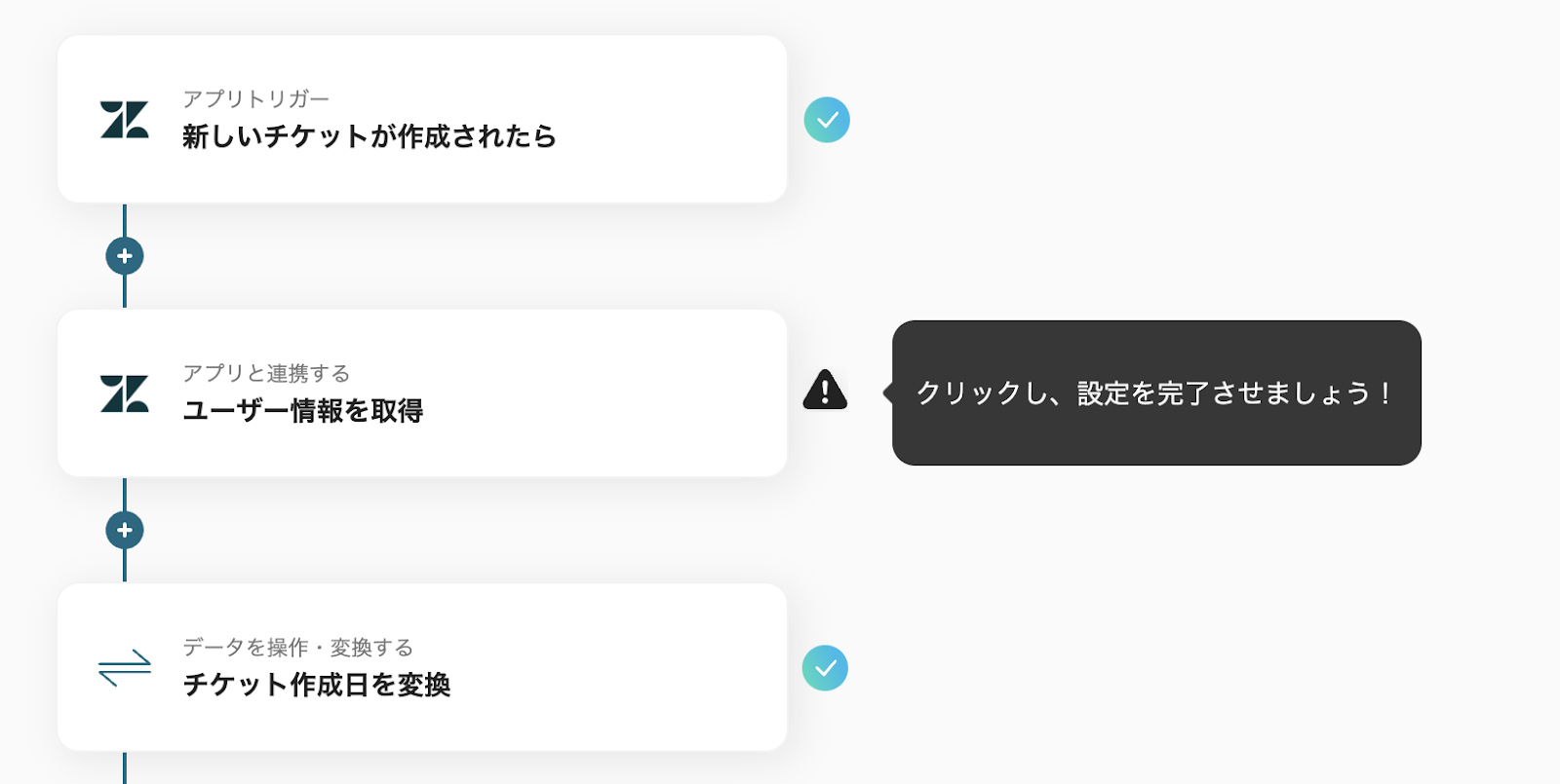 (1)続いて、3つ目のアクション「チケット作成日を変換」をクリックします。