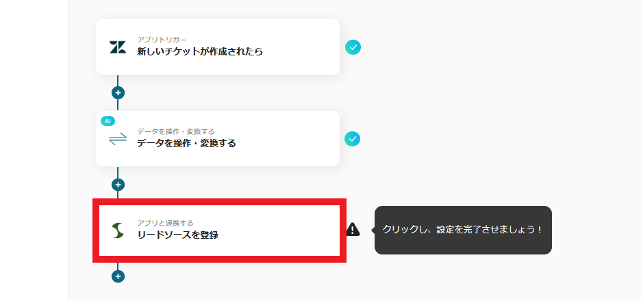 7.これで、【Zendeskでチケットが作成されたらサスケに情報を登録する】というフローが完成しました。