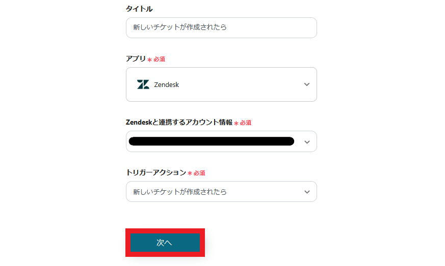 トリガーは「新しいチケットが作成されたら」を選択します。