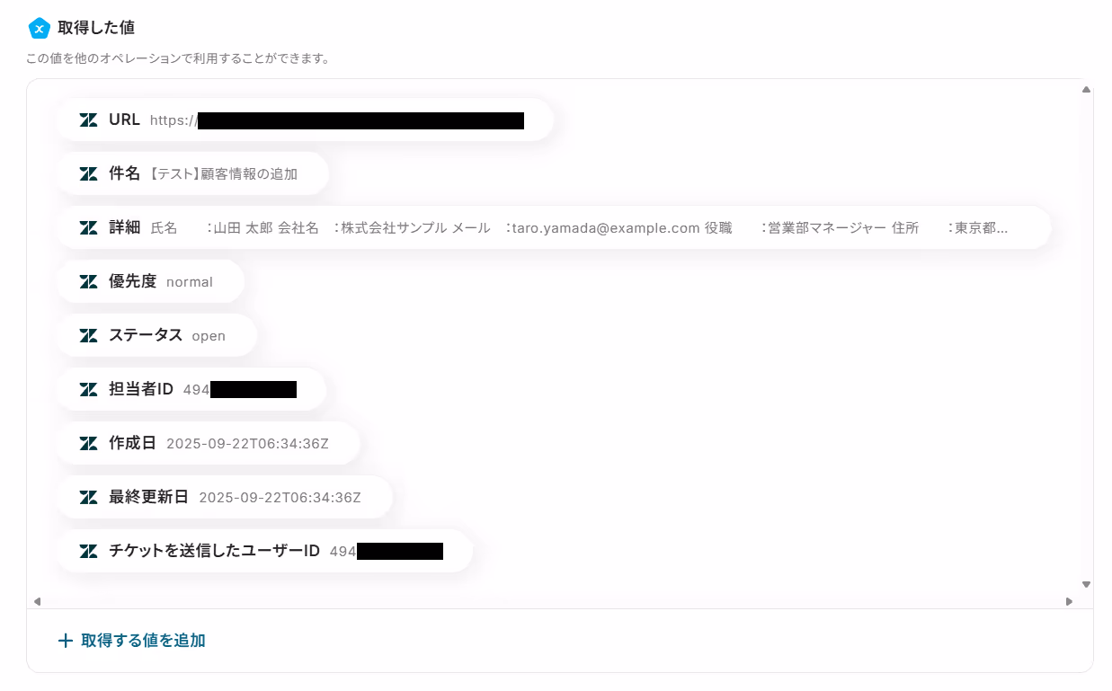 取得したチケット情報から、コンタクト作成に使用するデータを抽出していきます。