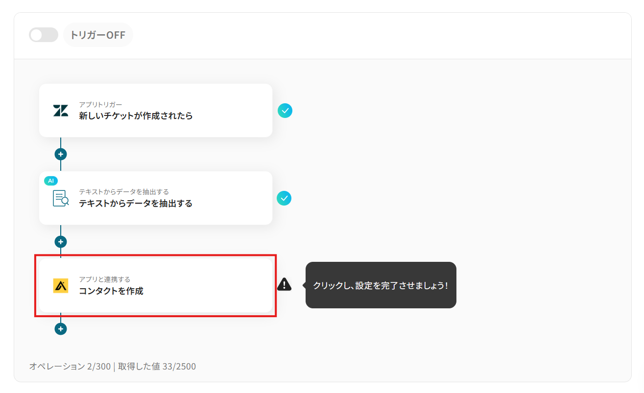 - Zendeskのトリガー設定と各アクション(データ抽出・コンタクト作成)の設定