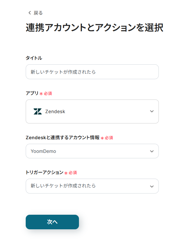 この記事では、先程ご紹介した「Zendeskでチケットが作成されたら、Apolloでコンタクトを作成する」フローを作成します。