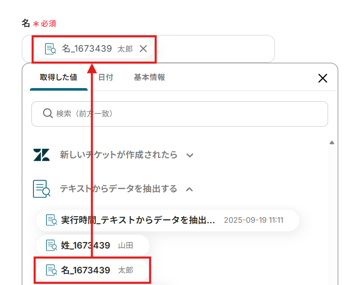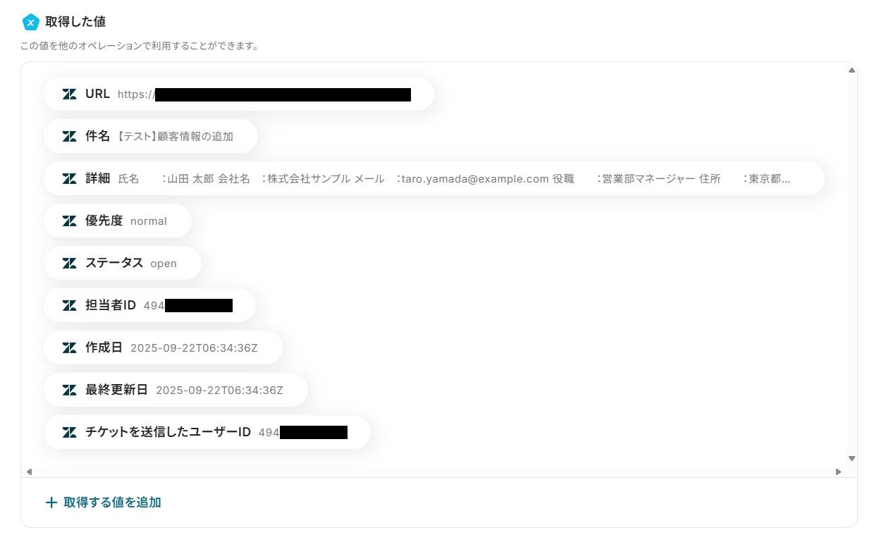 A:カスタムフィールドを取得することも可能です。トリガーアクションの取得した値の下部にある「+取得する値を追加」から、カスタムフィールドの設定を行ってください。