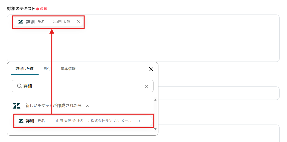 件名や詳細に指定したキーワードが含まれている、などの条件を満たすチケットのみをコンタクト作成の対象とできる連携です。