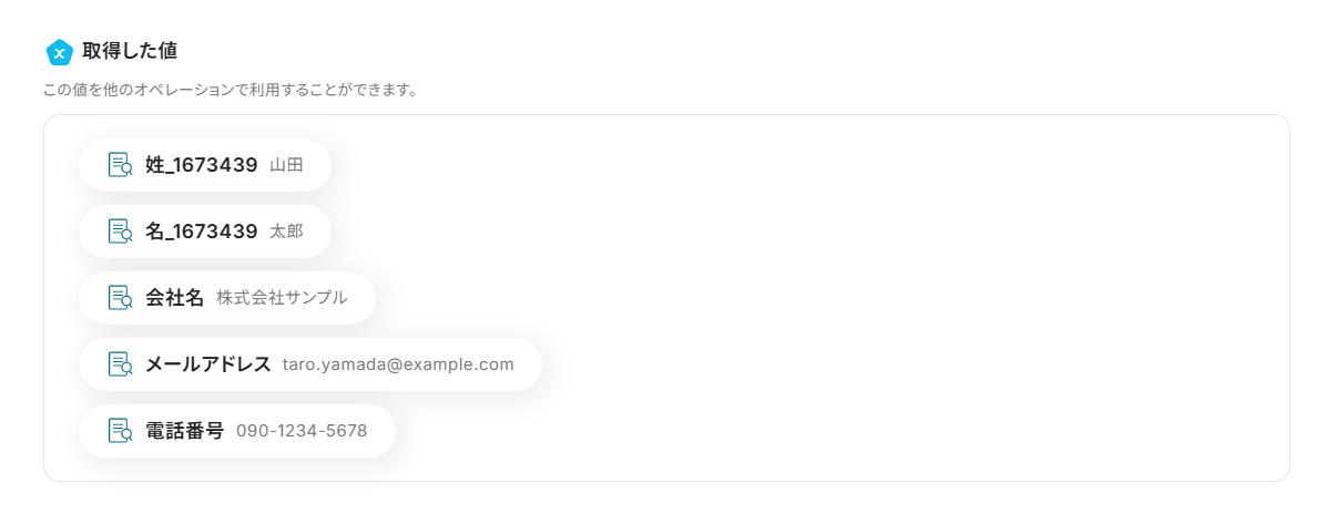 ・Googleフォームをトリガーとして使用した際の回答内容を取得する方法は下記を参照ください。