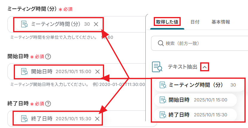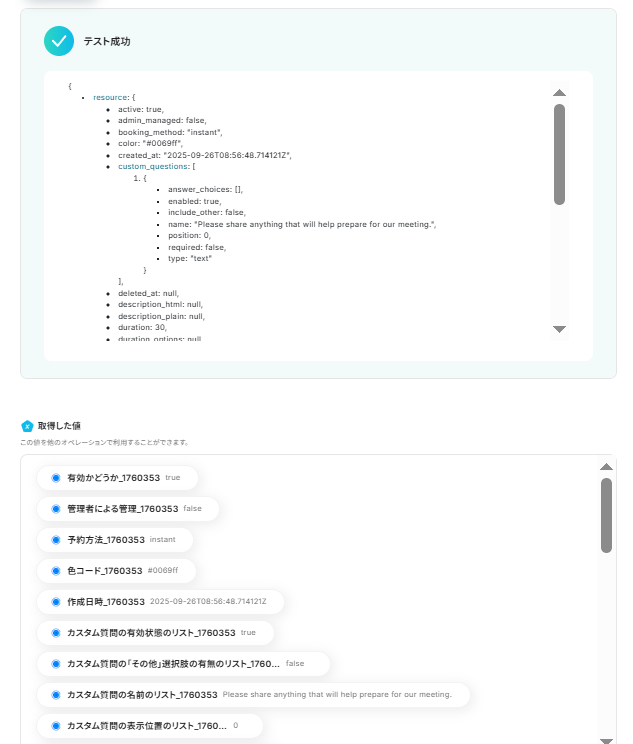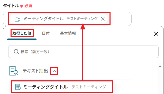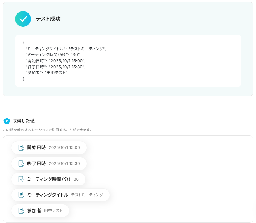 Yoomでは、テストを実行した際に取得できる情報のことを「取得した値」と定義しています。
