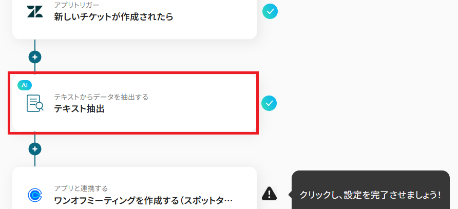 YoomのAIオペレーションを使用して、先ほどZendeskで作成されたチケットから、Calendlyと連携するために必要な情報を抽出していきます。