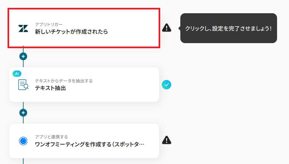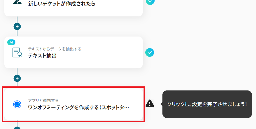 このワークフローを活用すれば、Zendeskに新しいチケットが作成されると、その内容をAIが解析し、Calendlyでワンオフミーティングを自動で作成します。