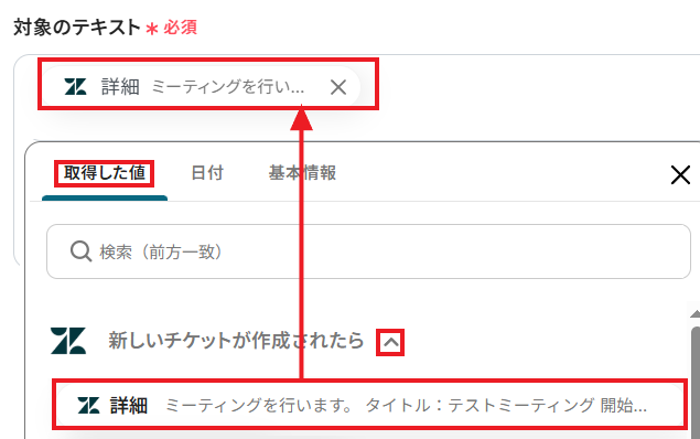 ここで取得した値を活用することにより、今後新たにZendeskでチケットが作成される度、新しい内容が対象テキストとして反映されていきます。