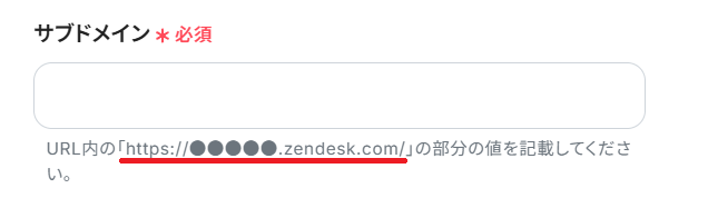 「サブドメイン」には、Zendeskにログインした状態でURLから該当部分を抽出し、ペーストしてください。