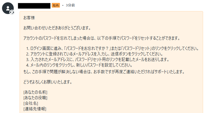 社内メモを選べば、下書きとして保存され、内容を確認した後にユーザーへ返信ができます。