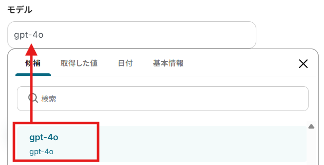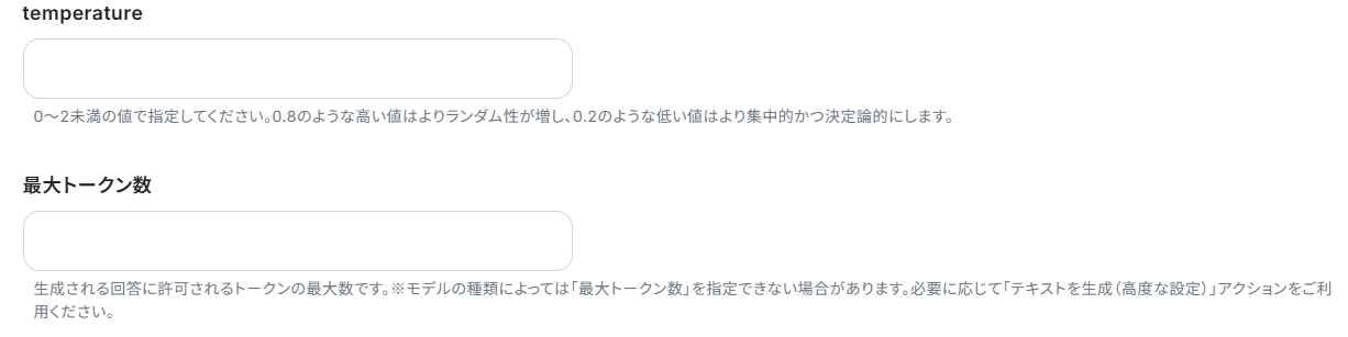なお、直接入力した値は固定値として扱われるので定型文となります。そのため、プロンプトはテキストを直接入力し、毎回変動することが望ましいデータは取得した値を活用しましょう。