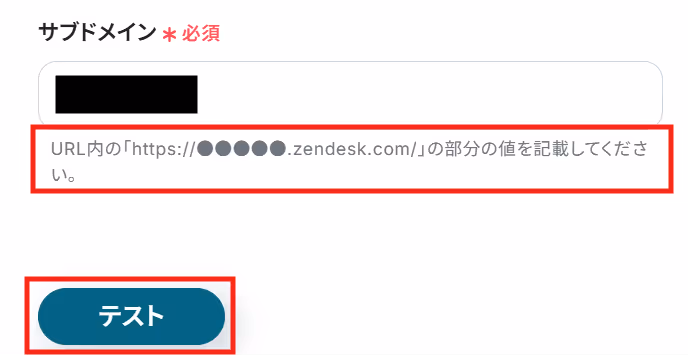 アカウント情報の項目にはステップ1でマイアプリ連携したZendeskのアカウント情報が自動で表示されます。