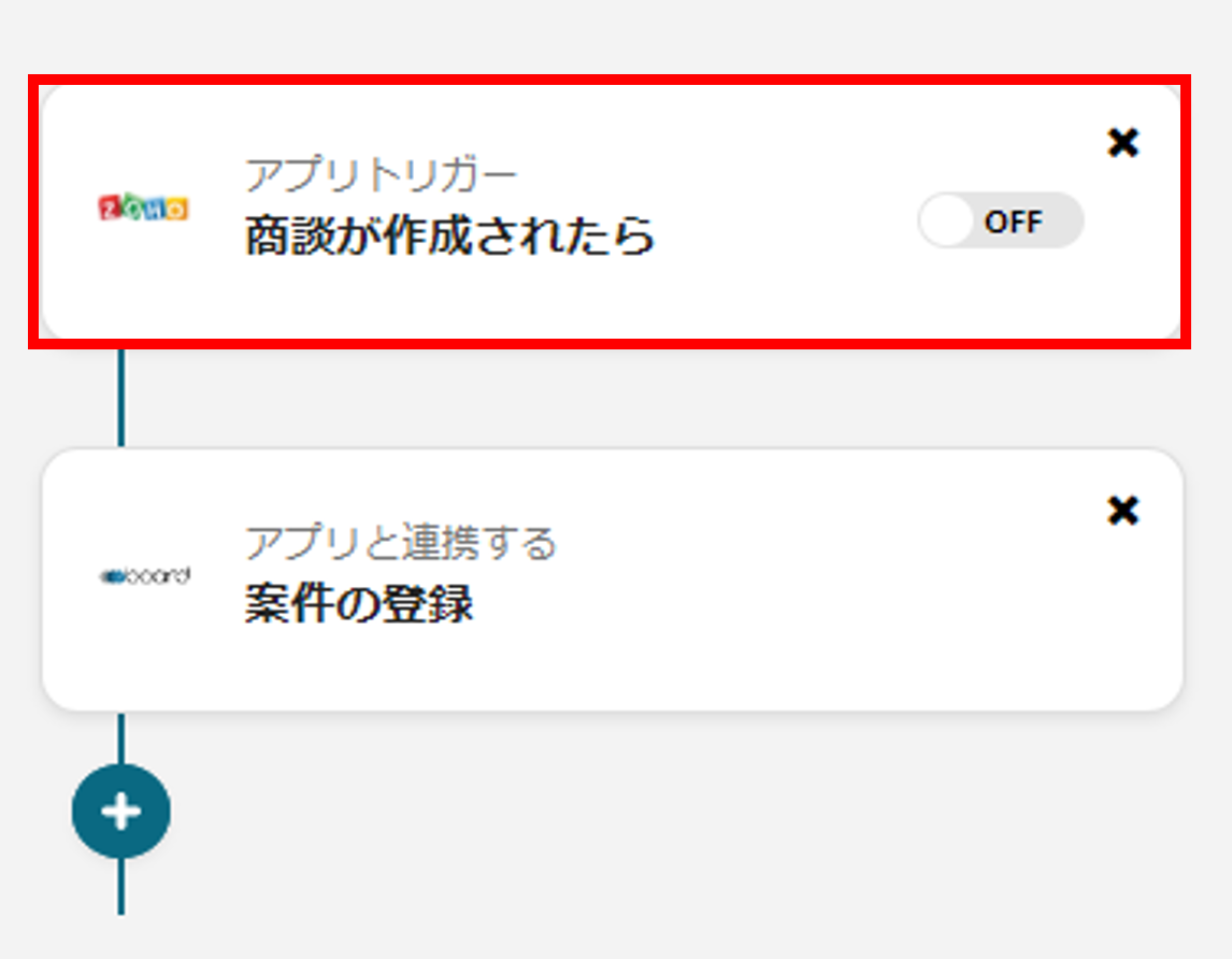 ここからは、「Zoho CRMに商談が登録されたら、boardに案件を作成する」フローをご紹介します。
