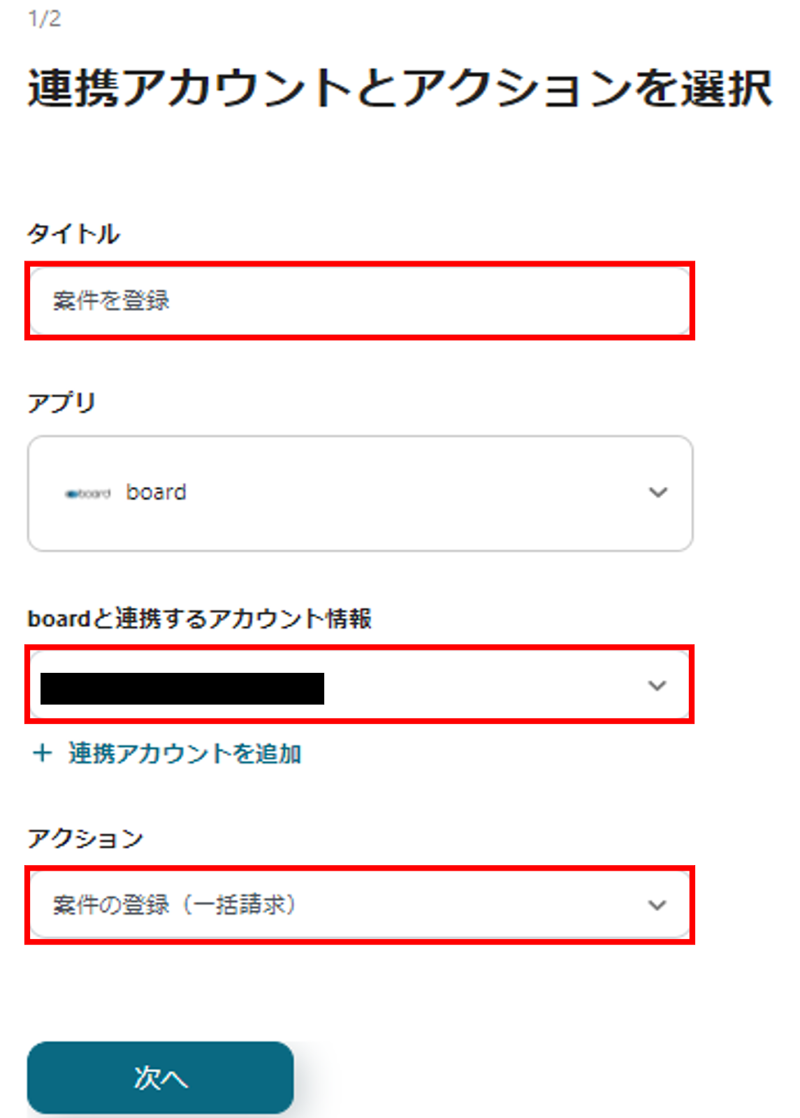 (3)boardと連携するアカウント情報が正しいかを確認