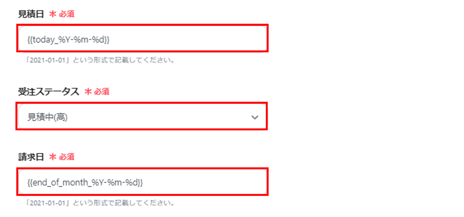 (6)各必須項目を設定