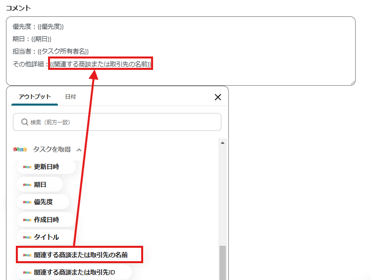 コメント欄は任意項目ですが、Zoho CRMからアウトプットされた情報を活用して、詳細に記載しておくのがおすすめです。