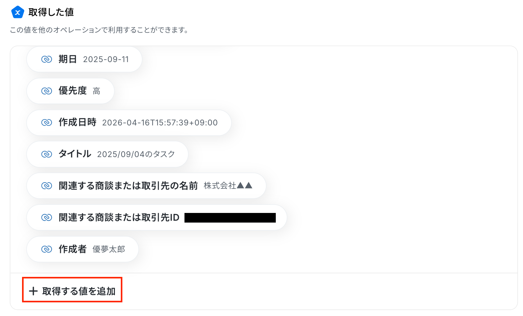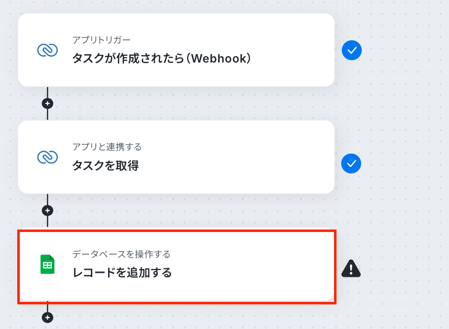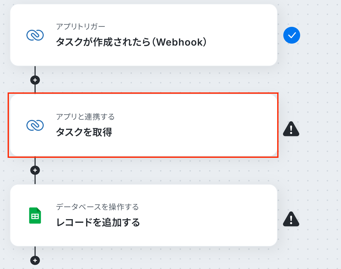 「タスクを取得」アクションの直下に、「分岐」オペレーションを追加することで、特定の条件を満たすタスクだけを自動化できるようになります。