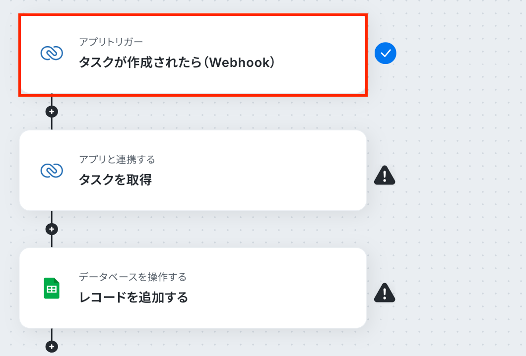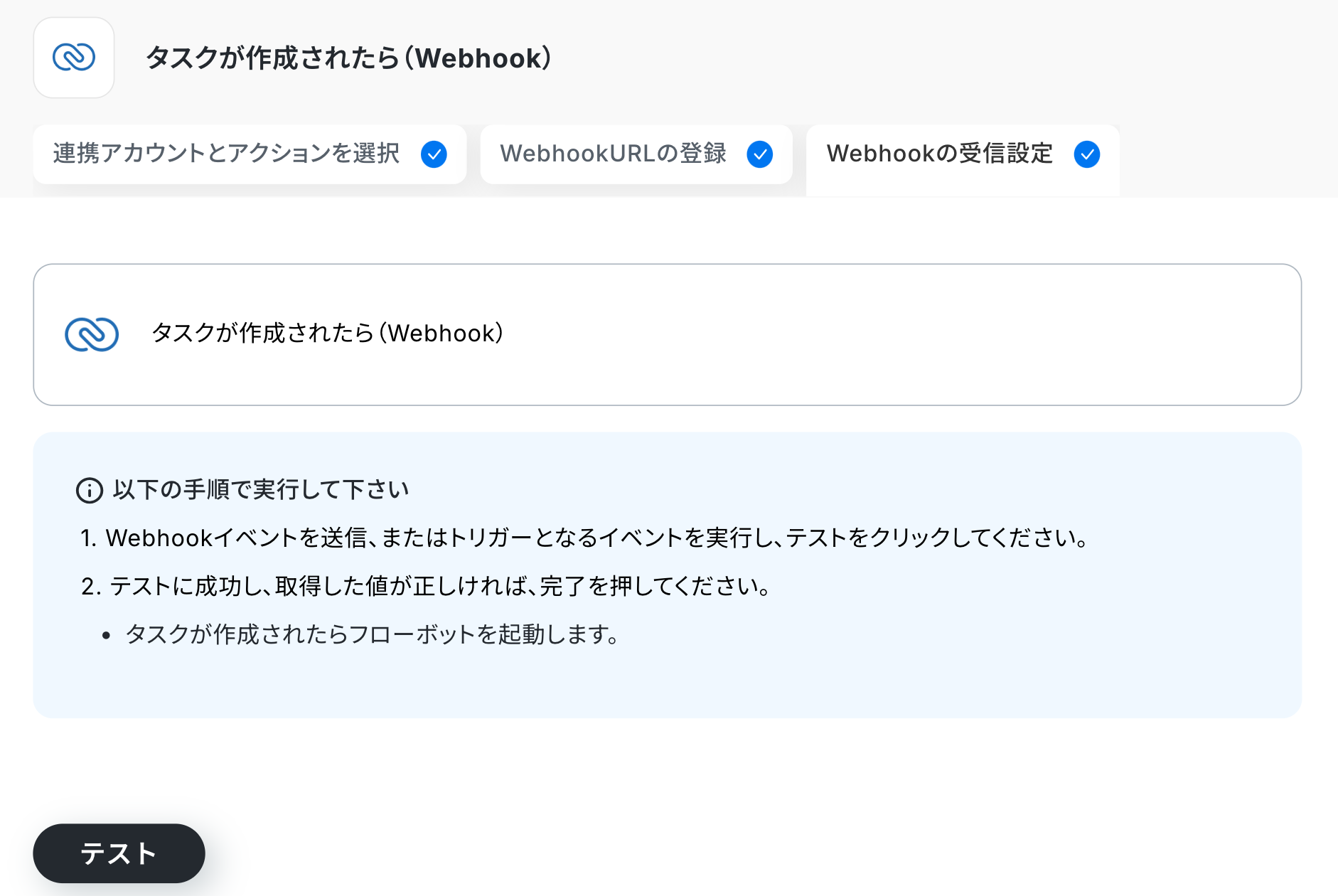 2. フローボットの「アプリトリガー:タスクが作成されたら(Webhook)」をクリックします。