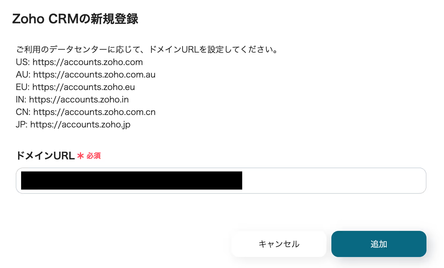 「ドメインURL」を入力し、[追加]をクリックしましょう。