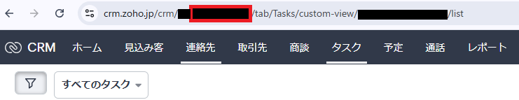 ※チャネルID:下図の赤枠部分が、Zoho CRMの管理画面を開いた際のURLに含まれるチャネルIDの参照位置です。