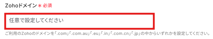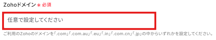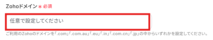 「Zohoドメイン」を注釈に沿って手動で入力しましょう。