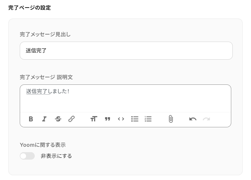 確認できたら元のページに戻って、「完了ページの設定」を行いましょう。
