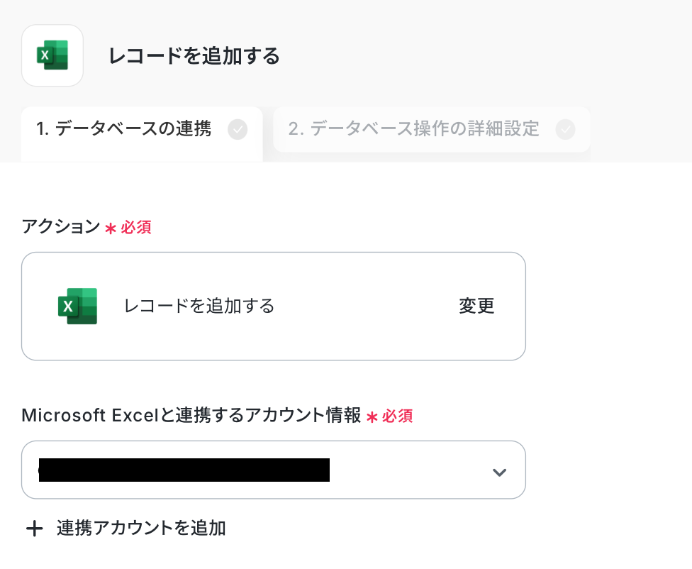 ・Microsoft Excelと連携するアカウント情報を確認します。