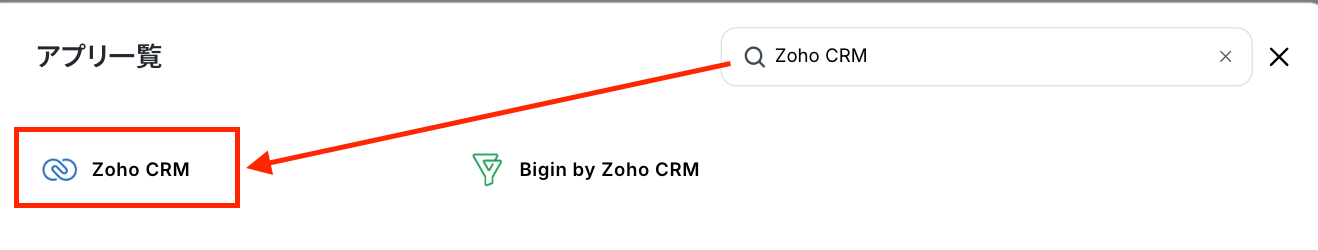 マイアプリの新規接続でZoho CRMを選択します。