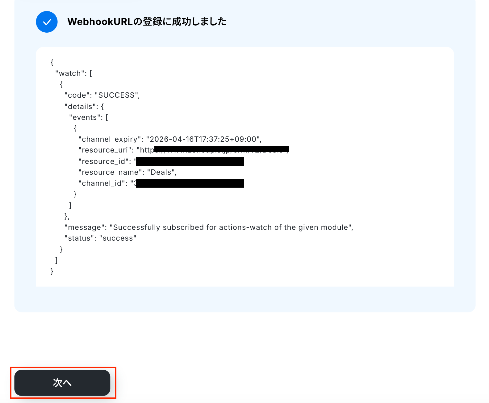 ・入力したら「WebhookURLを登録」をクリックしてください。