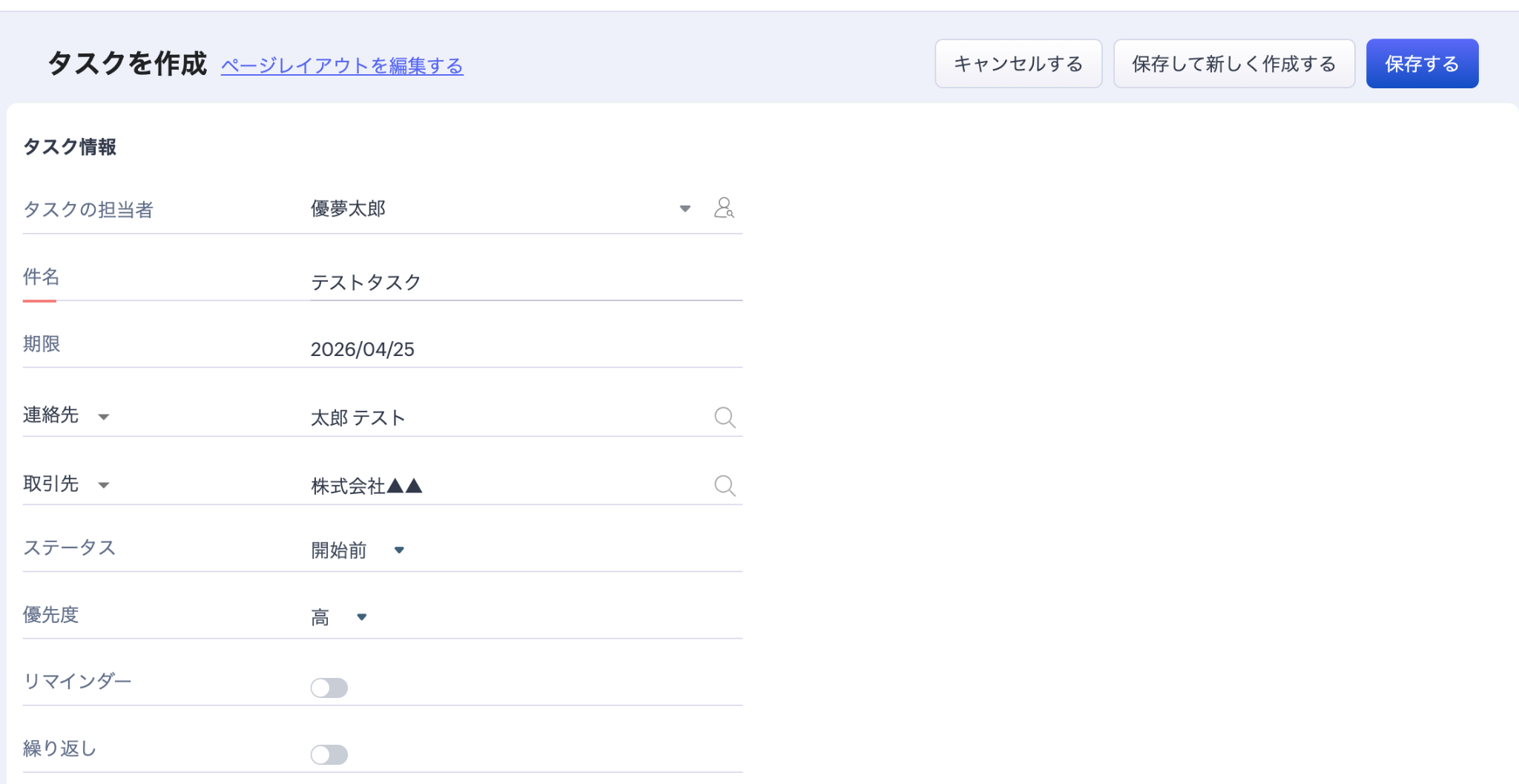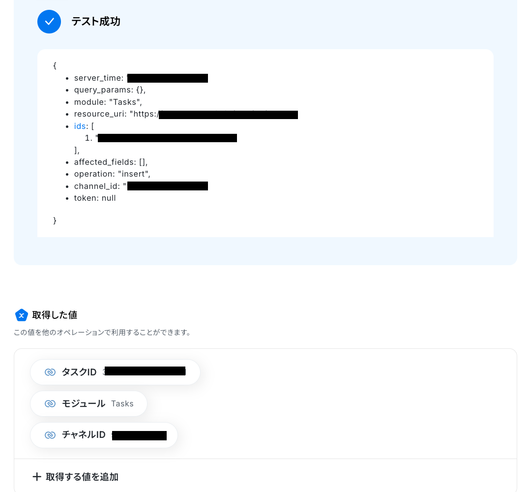 ・テストが成功し、タスク情報が取得できたら保存しましょう。