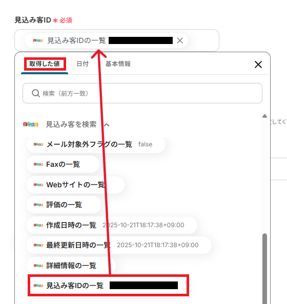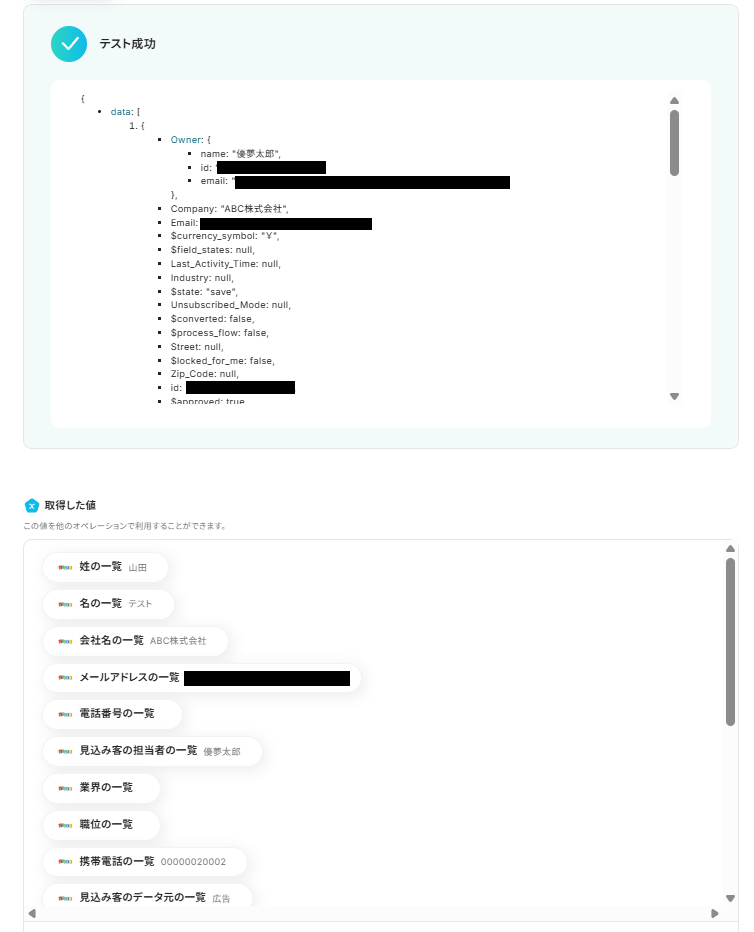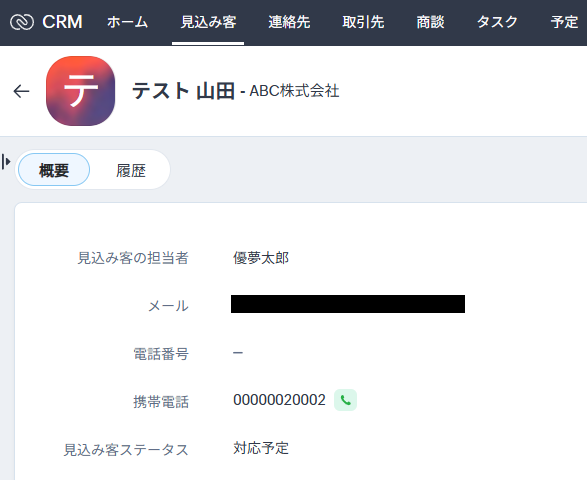 テストに成功すると、見込み客から一致するデータが反映されます。