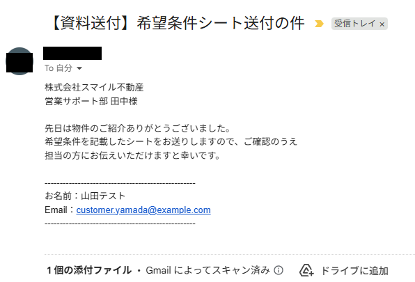 実際にZoho CRMに連携したいファイルが添付されたメールを受信する必要があるので、Gmailで実行してみましょう。
