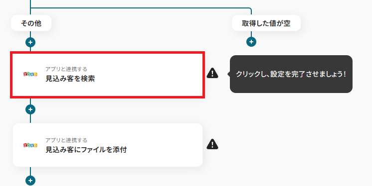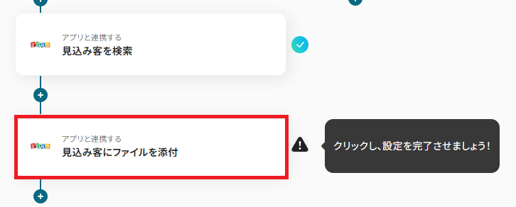 取得した見込み客情報を基に、ファイルを添付する設定をしていきます。