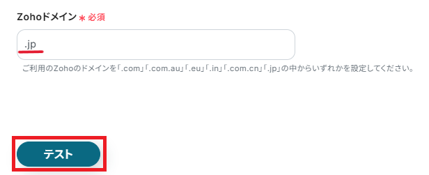 「Zohoドメイン」は、ステップ5で入力したものを再度入力してください。
