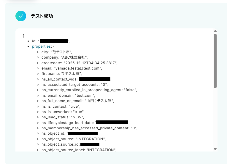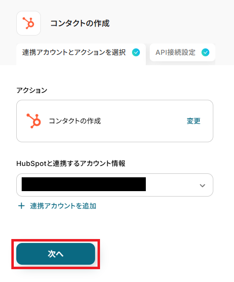 ステップ5:HubSpotでコンタクトを作成する設定