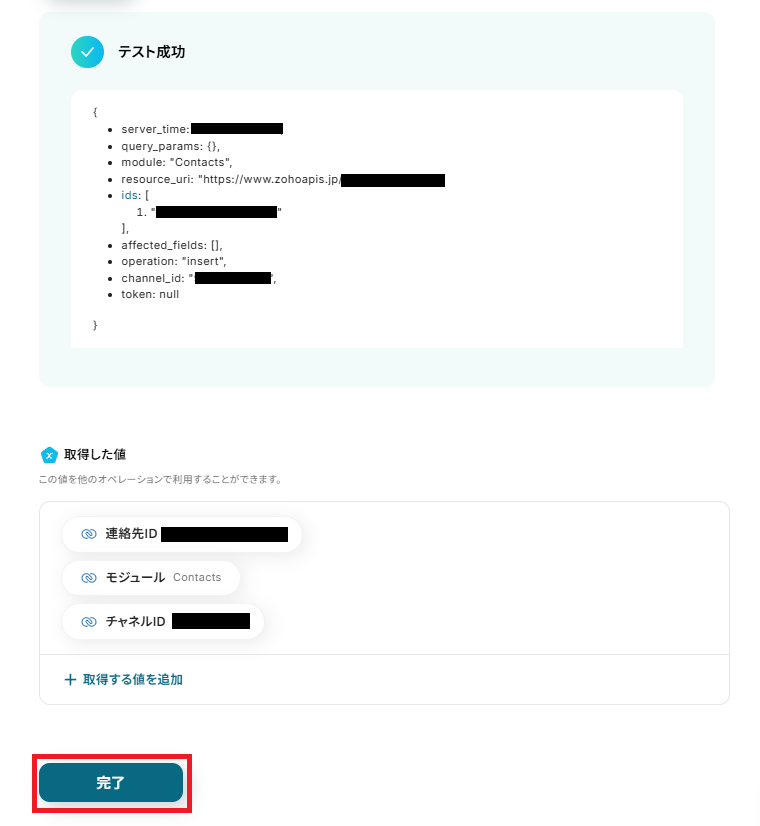 確認できたら、Yoomに戻り「完了」を押してください。