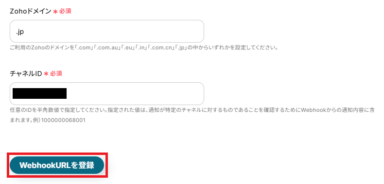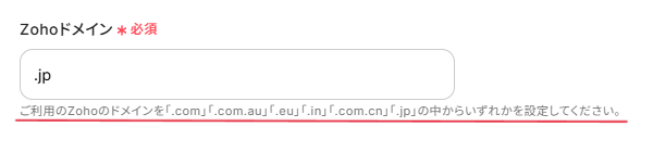 - Zoho CRMを連携する際に、ご利用中のアカウントに応じたZohoドメイン(.comや.jpなど)を任意で設定してください